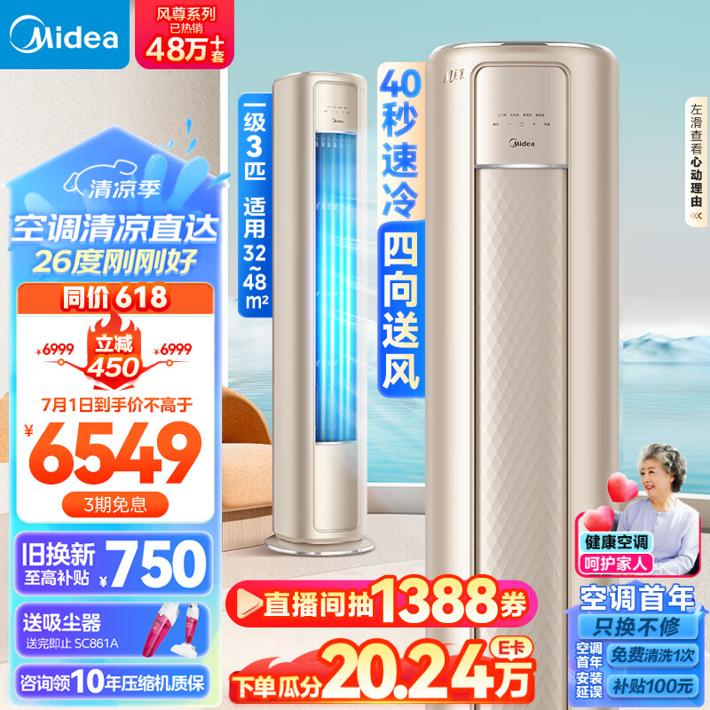 美的(Midea)空调 3匹 风尊 新一级能效 变频冷暖 独立除湿 客厅空调立式 空调柜机 智能家电KFR-72LW/N8MZB1价格:6549.00元!
