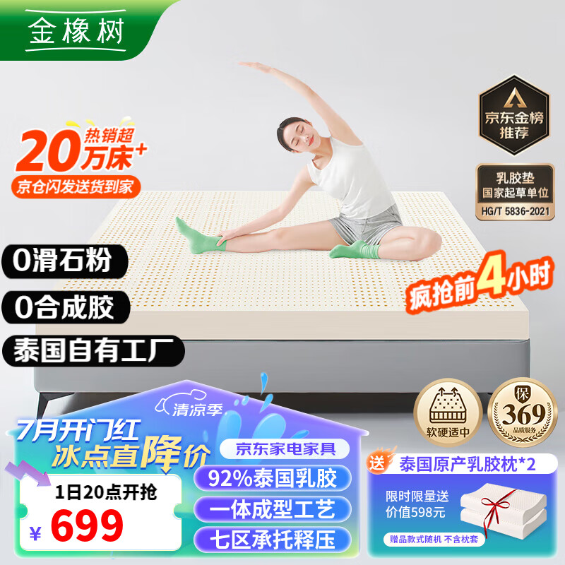 金橡树泰国乳胶原液进口床垫榻榻米双人床垫 1.8米*2米 泰舒 含内外套价格:1069.00元!
