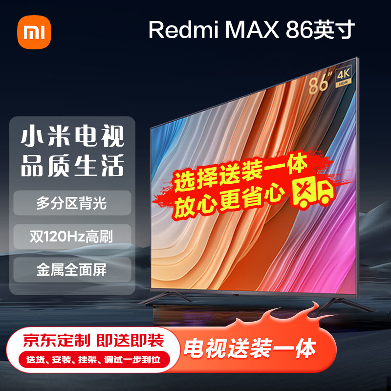小米电视 Redmi MAX 86 超大屏 120Hz【服务套装-送装一体含挂架】 智能教育游戏 85英寸+电视机价格:7999.00元!