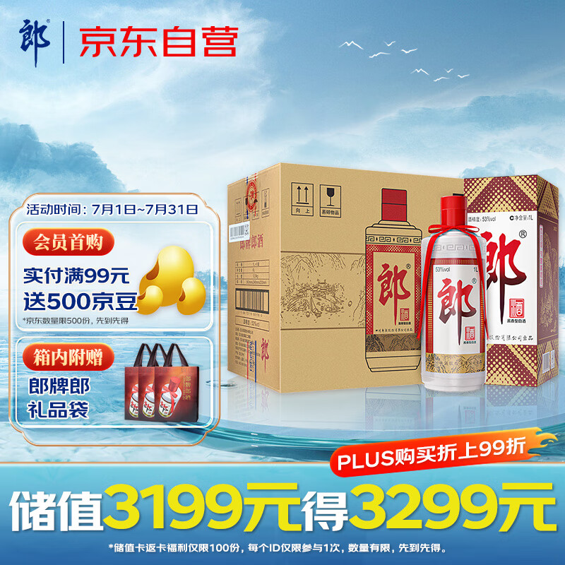 郎酒 郎牌郎酒 酱香型白酒 53度 1000ml*6瓶 整箱装 端午节送礼价格:3157.00元!