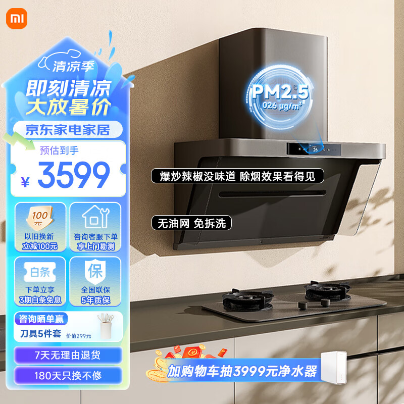 米家小米侧吸抽油烟机 净味净烟机P1 智能变频油烟机 家用厨房免拆洗吸油烟机MJ04CY价格:3599.00元!