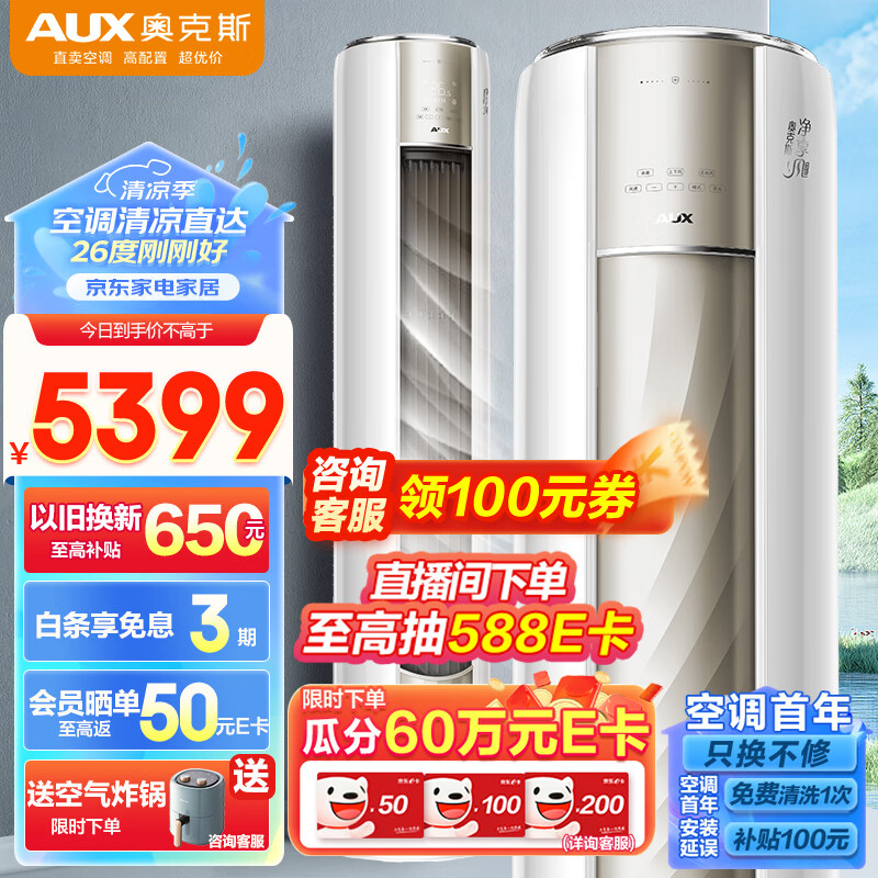 奥克斯(AUX)空调柜机3匹 新一级能效 客厅圆柱立式 冷暖变频节能 WiFi智控KFR-72LW/BpR3AQJ1(B1)价格:5399.00元!
