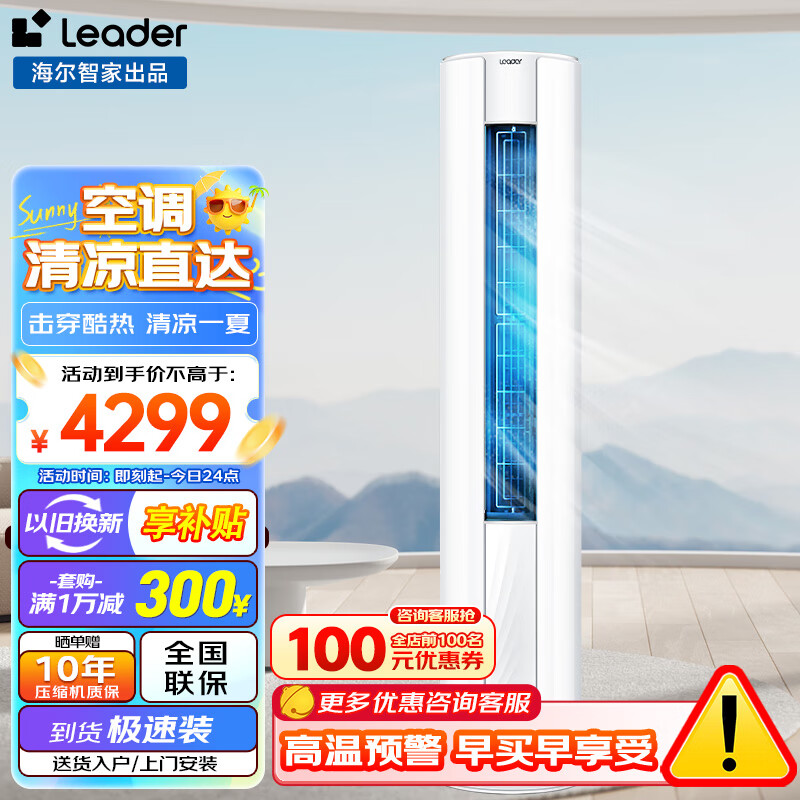 Leader空调海尔智家出品 新一级能效2匹全直流变频冷暖空调 APP智控立柜式自清洁 智能防直吹 以旧换新价格:4299.00元!
