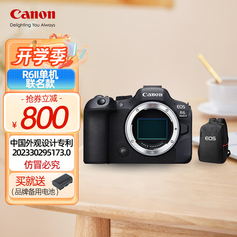 佳能(Canon) EOSR6二代全画幅高端专业微单数码照相机视频直播高清相机 R6二代单机身+eos包 联名款(不含镜头)价格:18988.00元!