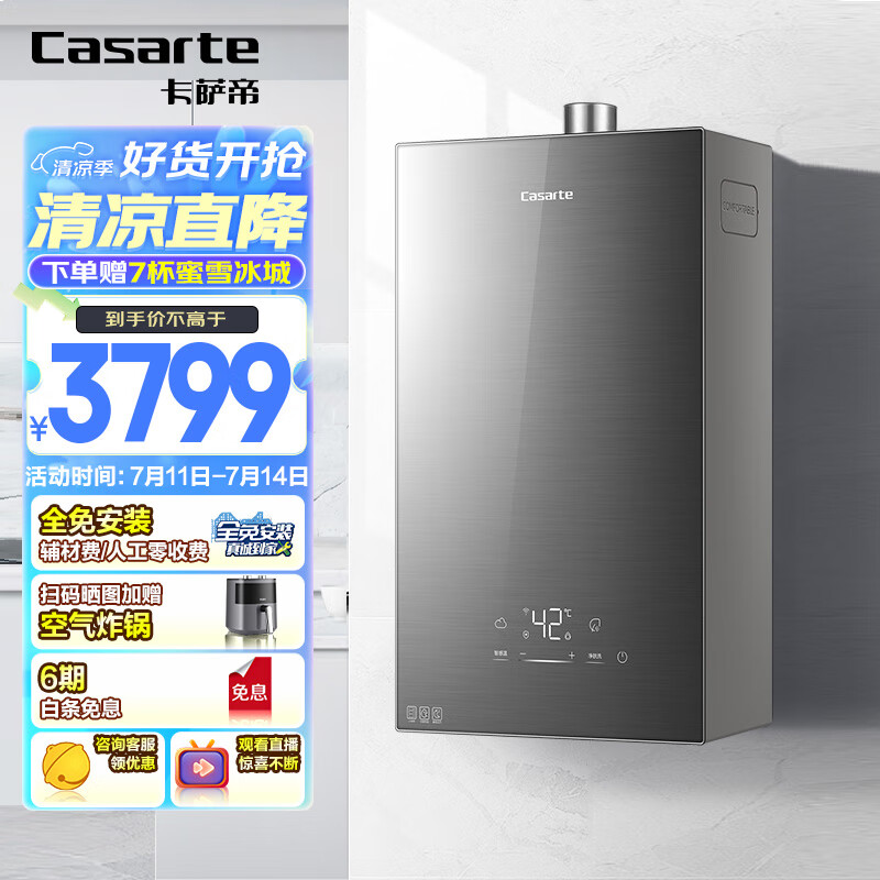 卡萨帝(Casarte)13升燃气热水器天然气【CW3】母婴级恒温 水伺服 静音 下置风机小尺寸JSQ25-13CW3(12T)U1以旧换新价格:3799.00元!