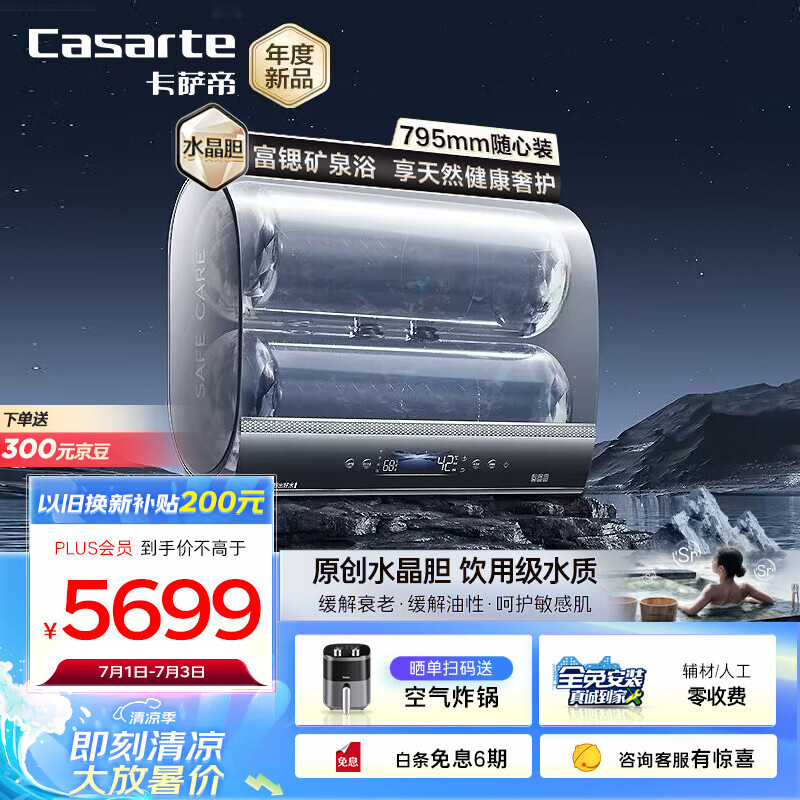 卡萨帝(Casarte)60升【水晶胆PROH3】家用储水式超薄扁桶电热水器富锶汤浴变频速热一级能效CES60HD-PROH3KCEK03U1价格:5999.00元!