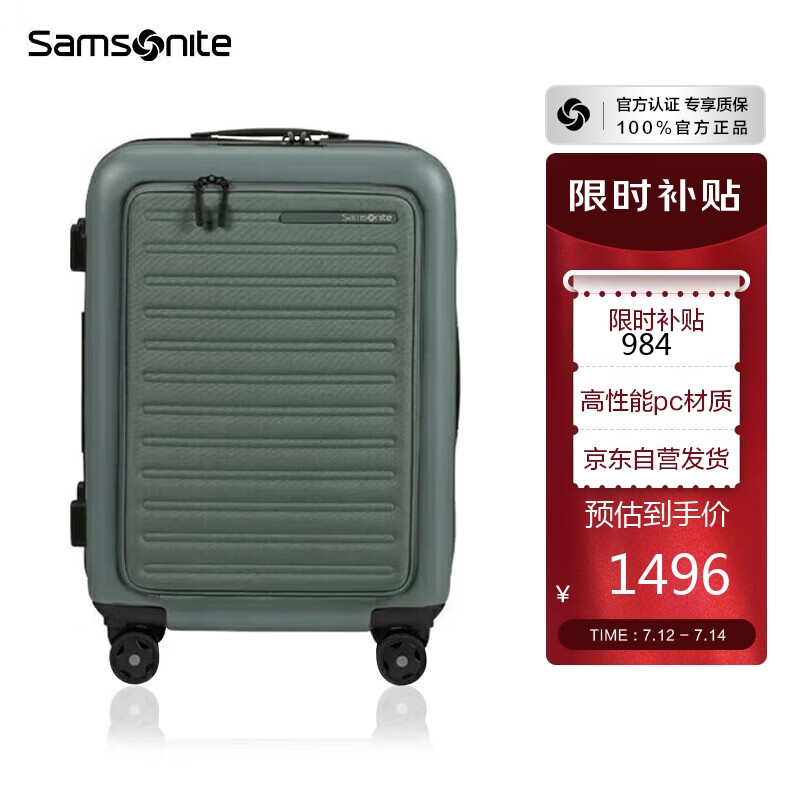新秀丽(Samsonite)行李箱欧洲设计万向轮拉杆箱前开口登机箱KF1*14005森林绿20英寸价格:1742.00元!