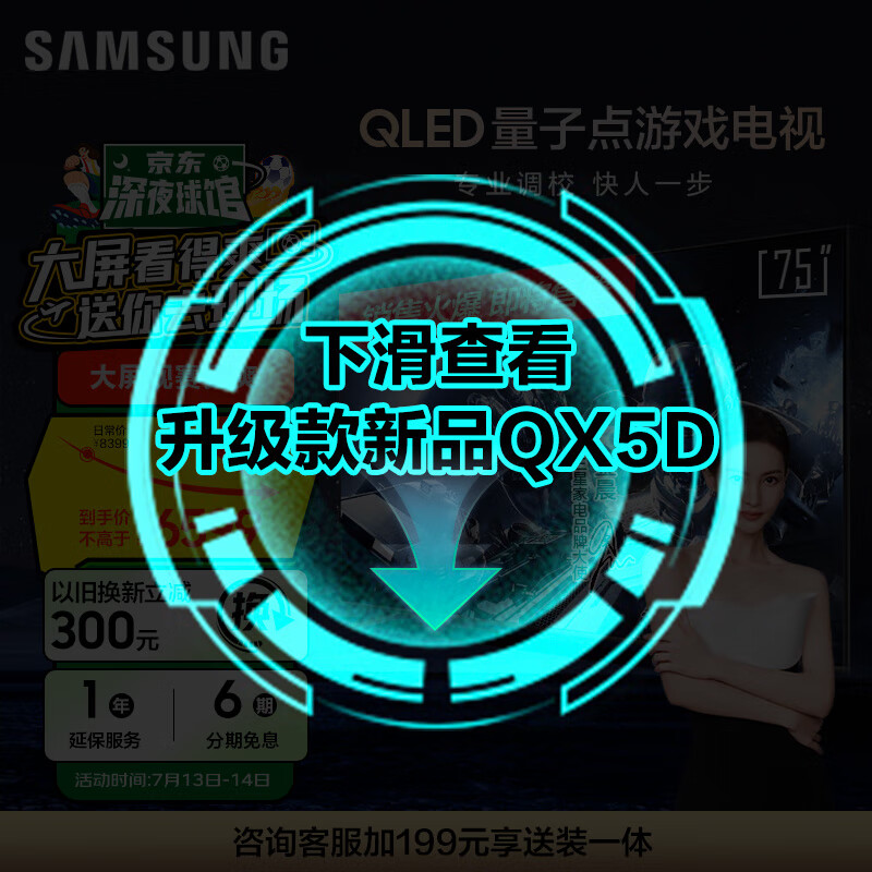 三星(SAMSUNG)75QX3C 75英寸 QLED量子点 专业游戏电视 无开机广告 超薄4K QA75QX3CAJXXZ【欧洲杯】价格:6599.00元!