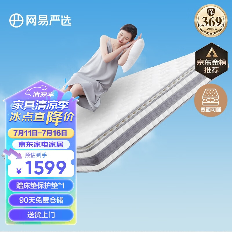 网易严选AB面弹簧床垫1.5*1.9米 乳胶床垫 奢睡款 抑菌防螨 独袋弹簧价格:1799.00元!