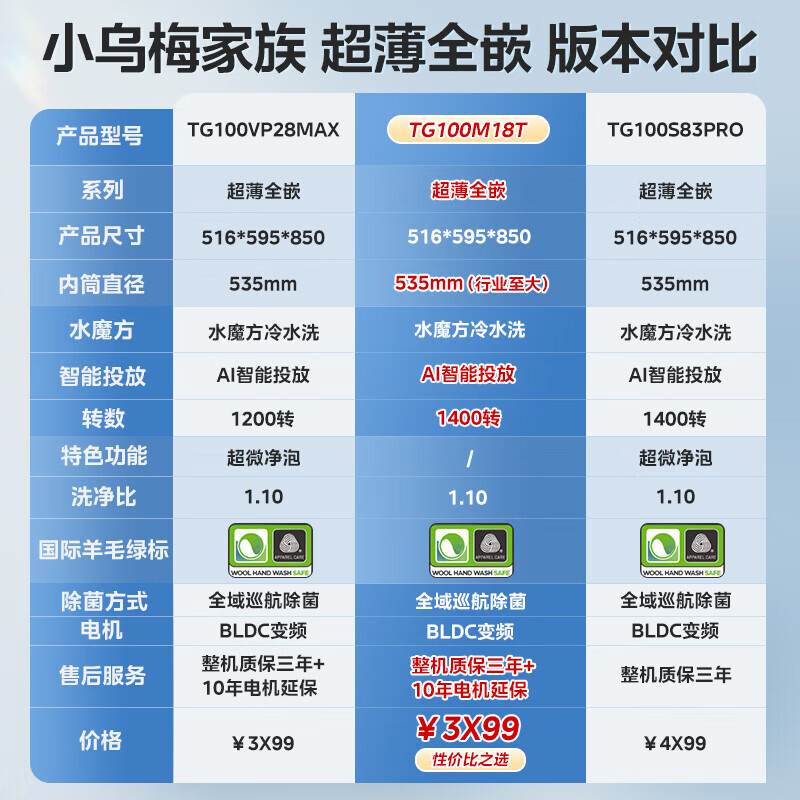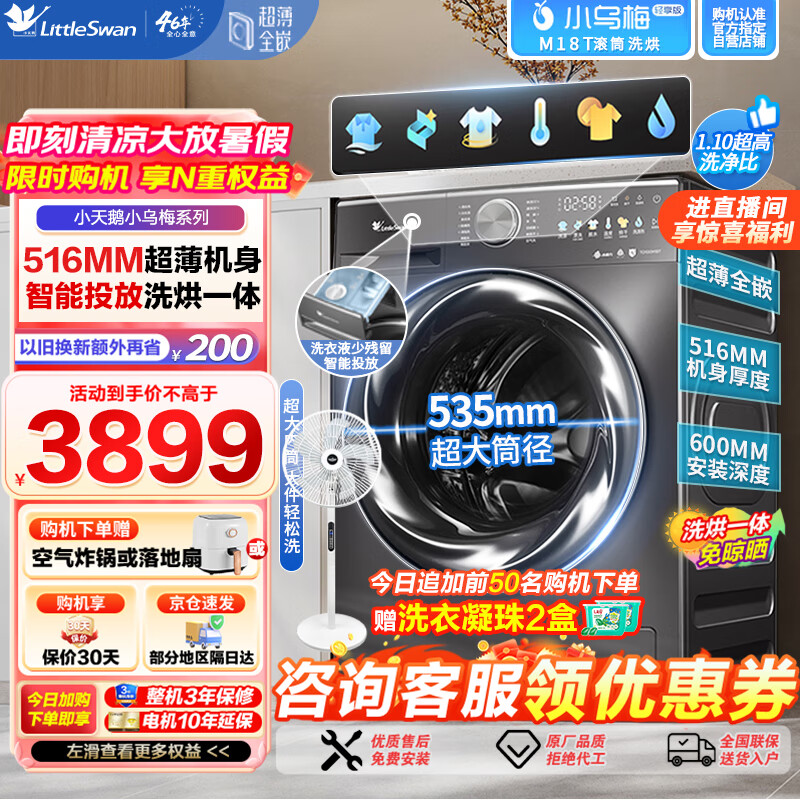 小天鹅(LittleSwan)洗衣机滚筒10公斤小乌梅全自动洗烘一体水魔方智能投放超薄全嵌高洗净比羊毛绿标轻享版M18T价格:3899.00元!