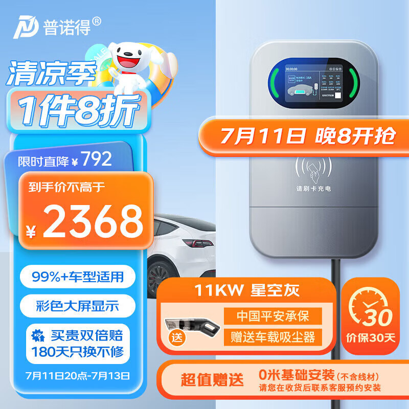 普诺得 星空灰新能源电动汽车家用充电桩彩屏款 380V11KW 适配于特斯拉Y极氪001专用三相充电器价格:2960.00元!
