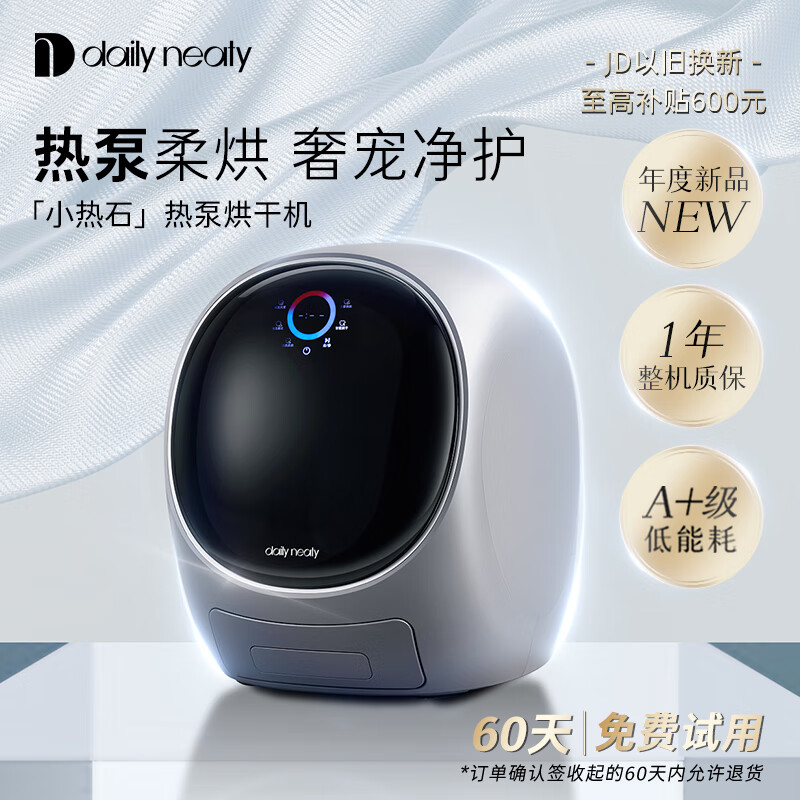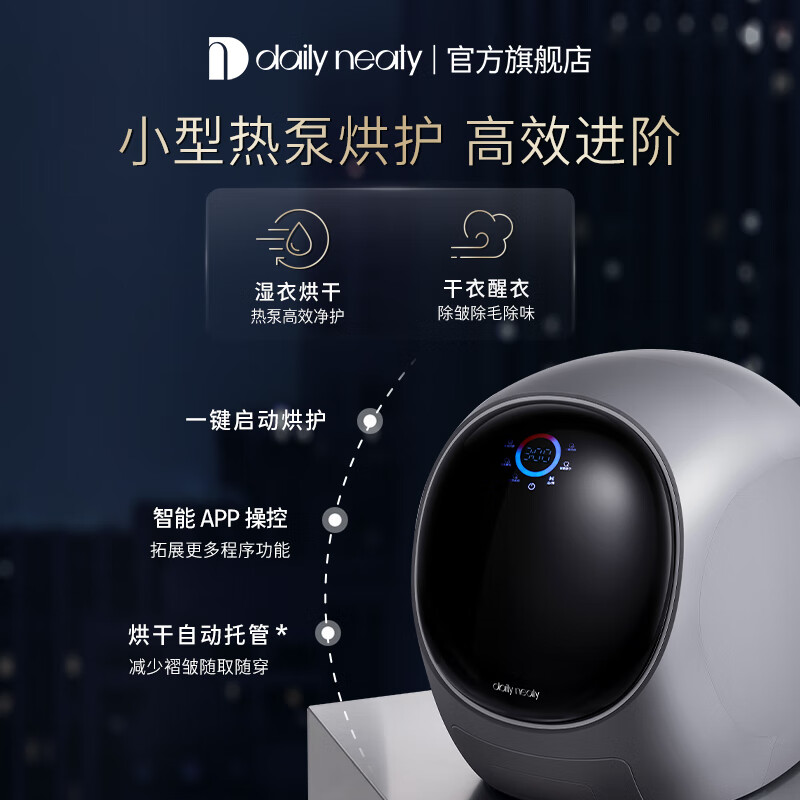 daily neaty烘干机 小型热泵烘干机 家用滚筒式干衣机 小型烘衣机 单烘款 即烘即穿 除菌除螨除宠物毛发小热石价格:3499.00元!