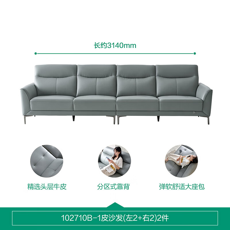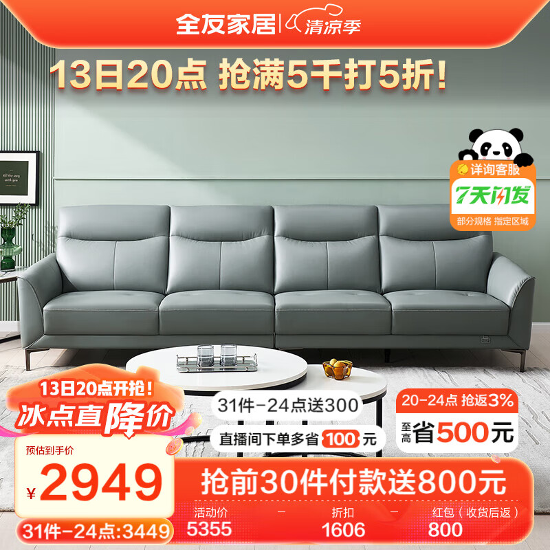 全友家居 真皮沙发 现代简约头层牛皮轻奢风直排式皮艺沙发客厅102710价格:5355.71元!