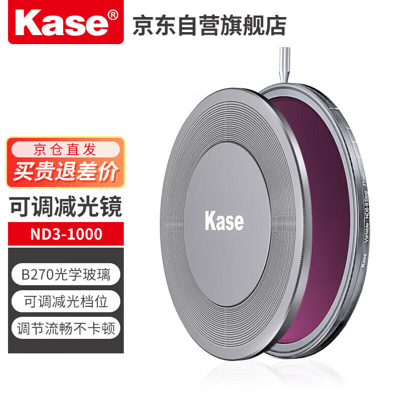 卡色(Kase)减光镜 可调ND3-1000 1.5-10档 82mmND镜中灰密度镜低色偏长曝光水流拉丝慢门 磁吸镜头盖价格:658.00元!