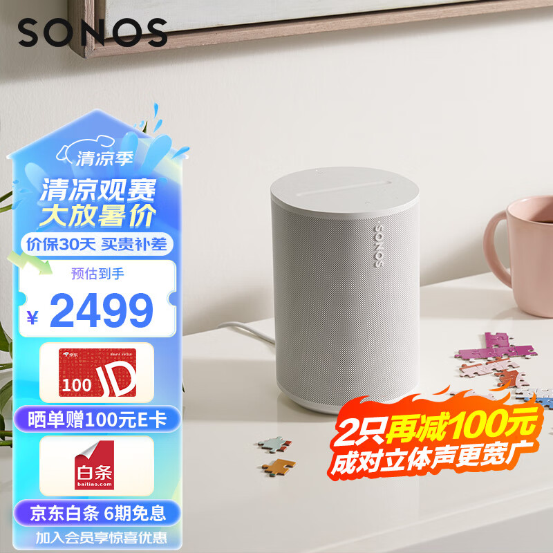 SonOS Era100 WIFI无线蓝牙 环绕可组合 家庭影院 迷你音响 One升级版 家用桌面客厅卧室书架 白色价格:2499.00元!