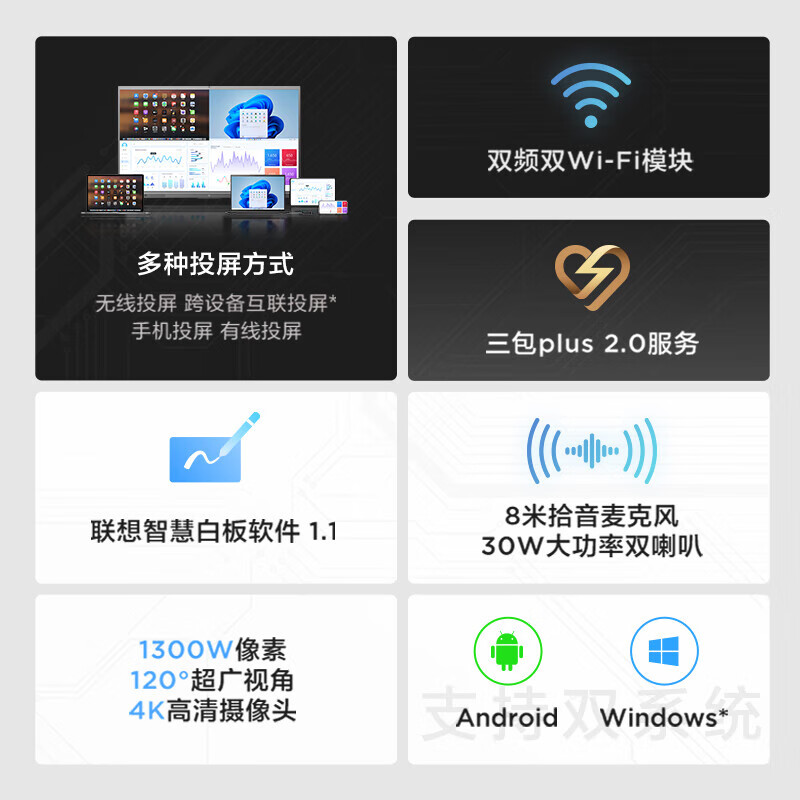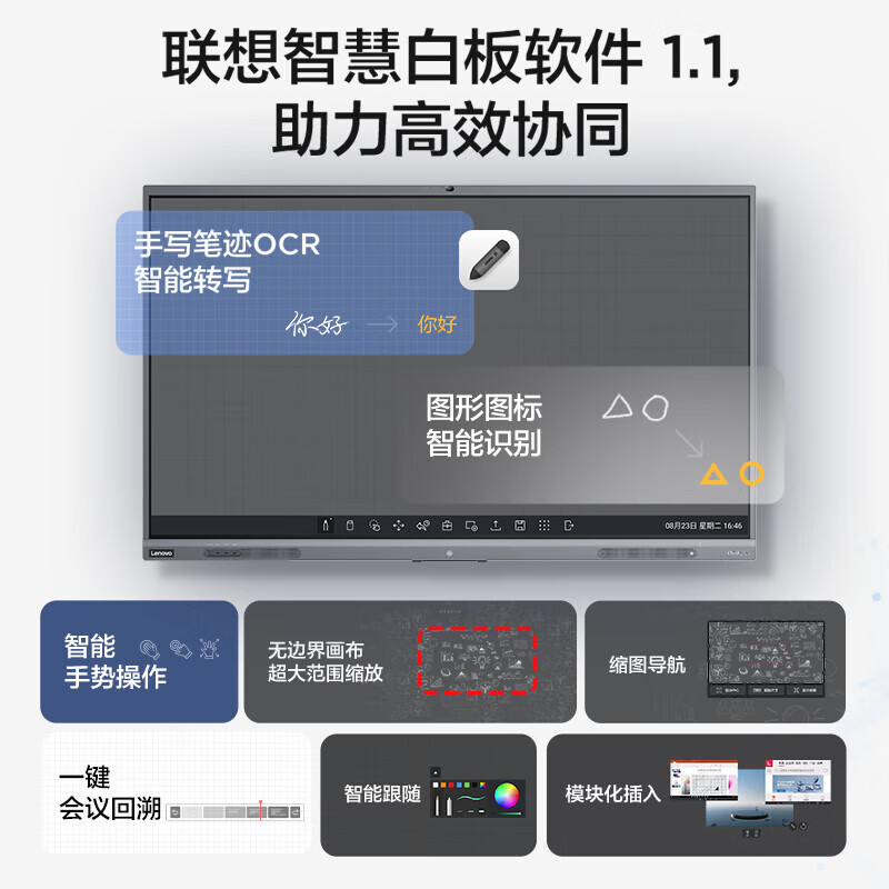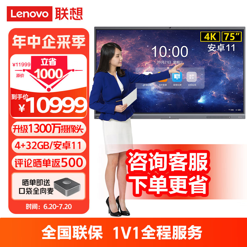 联想thinkplus 会议平板一体机75英寸 触摸屏 智能电子白板视频会议教学办公室培训高清显示屏S75+价格:10999.00元!