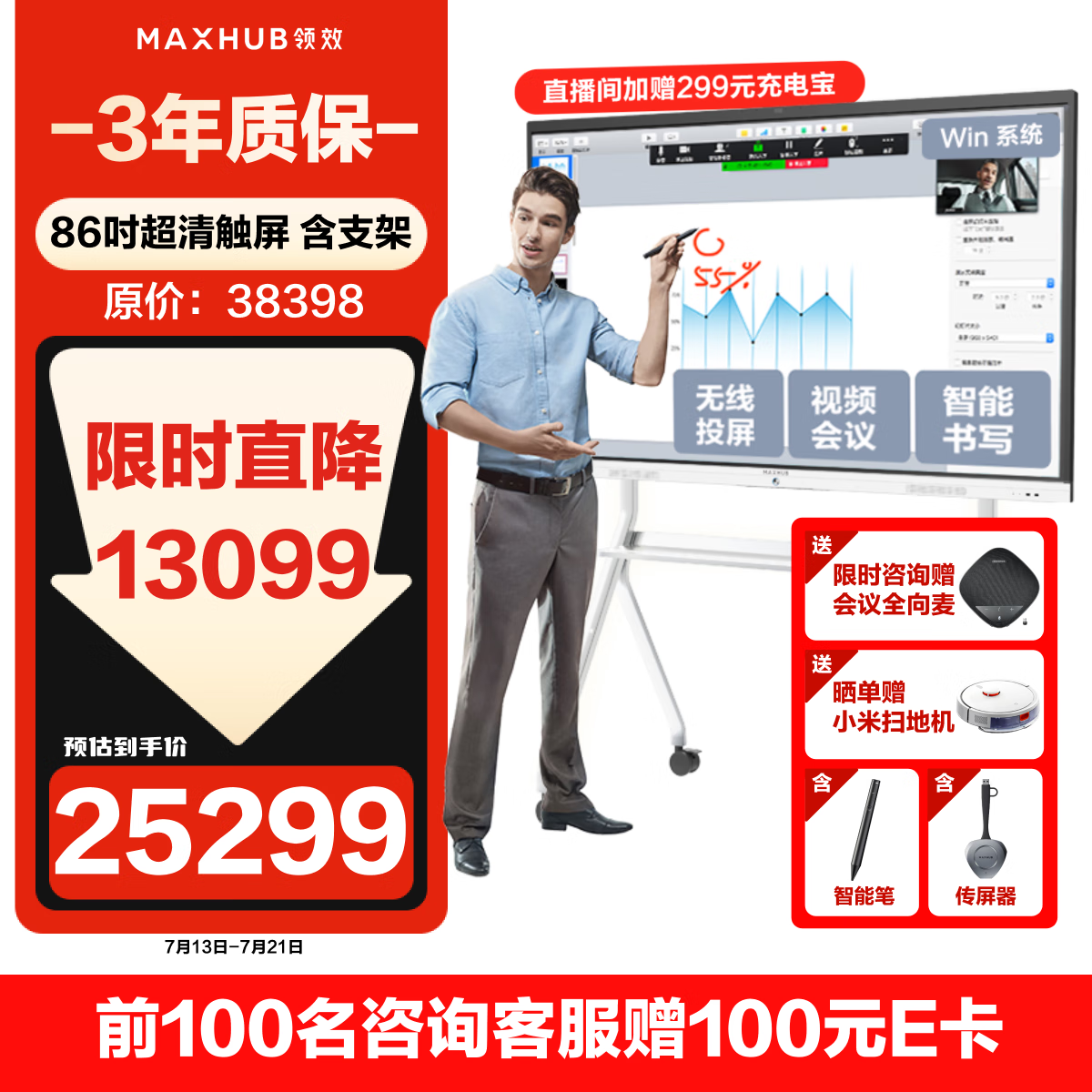maxhub会议平板一体机触摸屏86英寸视频会议投屏4K电子白板办公教学商用智慧显示屏企业采购新锐Pro套装价格:28089.00元!
