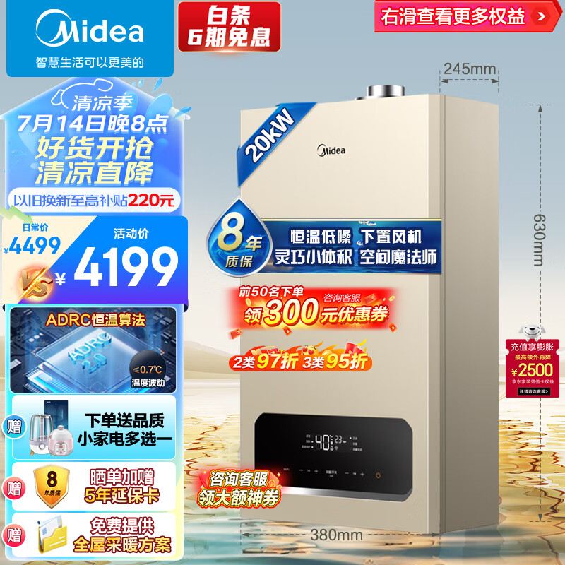 美的(Midea)双变频一级低噪舒适恒温燃气壁挂炉 天然气供暖 地暖 家用锅炉省气 以旧换新 下置风机L1GB20-R05价格:5699.00元!