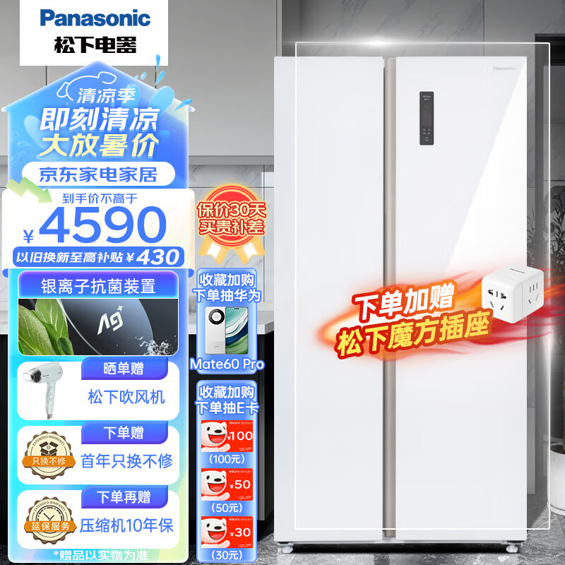 松下(Panasonic)冰箱632升大容量冰箱双开门冰箱1级能效白色玻璃风冷无霜家用冰箱优选NR-EW63WPA-W价格:3959.00元!
