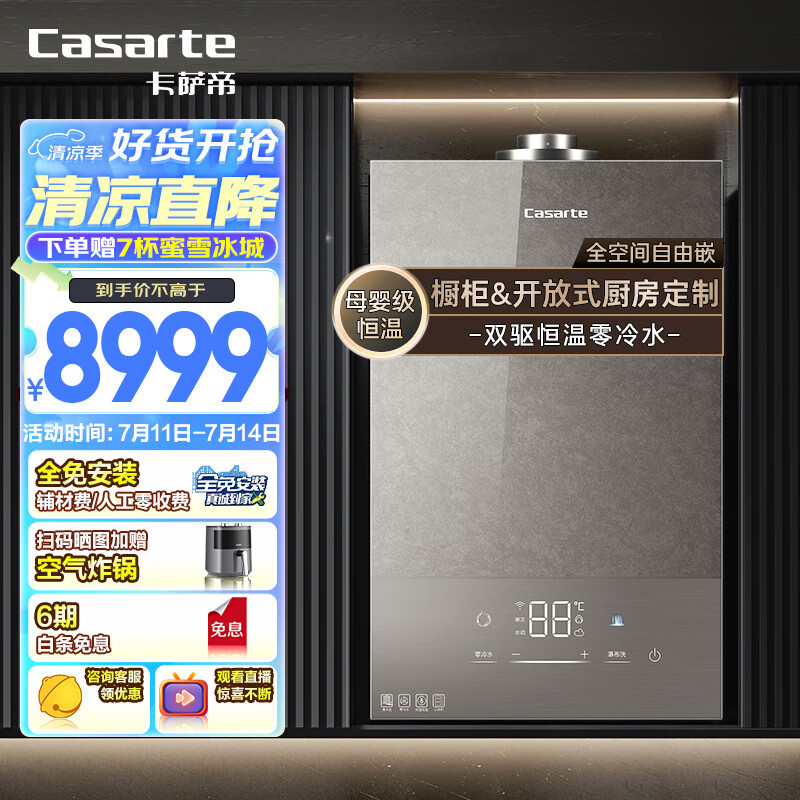 卡萨帝(Casarte)16升燃气热水器天然气【CU5】三管零冷水 全隐藏安装 双驱水伺服 静音JSG31-16CU5FRVGU1以旧换新价格:8999.00元!