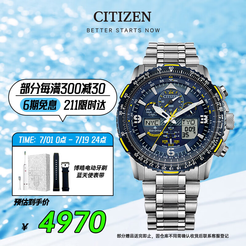 西铁城(CITIZEN)手表男日韩表蓝天使光动能电波钢带运动父亲节礼物JY8078-52L价格:5520.00元!