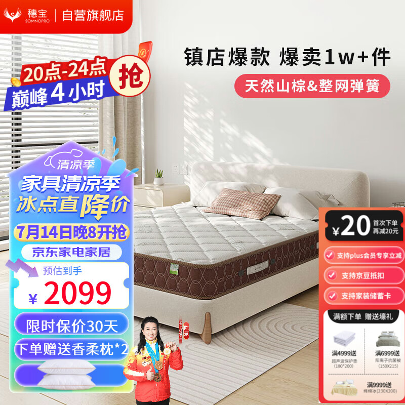 穗宝(SYMBOL)床垫环保3D山棕床垫弹簧床垫健脊棕垫亲爱嘚1.8米*2米(京仓)价格:2599.00元!