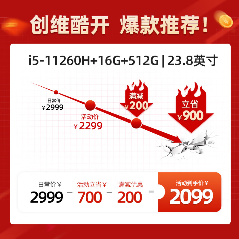 酷开 创维电脑 23.8英寸办公商用家用娱乐一体机台式电脑(11代酷睿i5-11260H 16G 512G SSD 双频WiFi 蓝牙)价格:2299.00元!