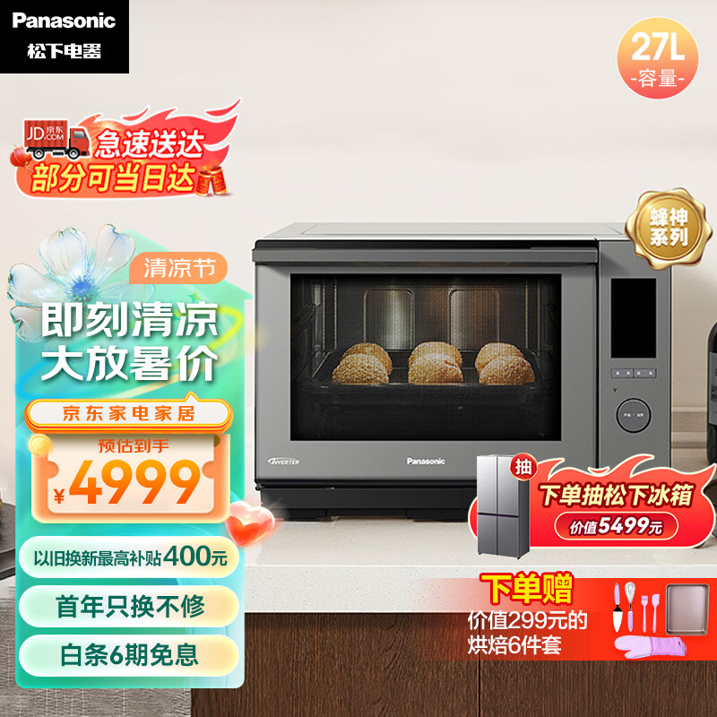 松下(Panasonic)蜂神系列NN-DS2500XPE 27升变频微波炉 微蒸烤炸一体机蜂巢顶聚热彩屏触控 智能APP(WIFI)价格:2999.00元!