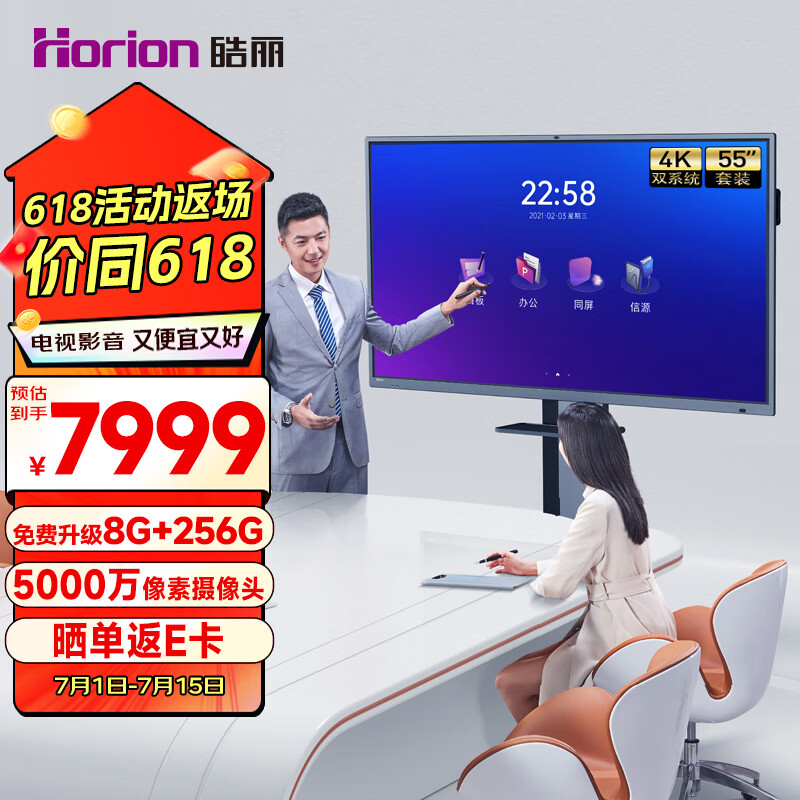 皓丽智能视频会议平板一体机55英寸会议电视Win11/8+256智慧触屏商用会议室大屏含碳钢移动支架价格:9549.00元!