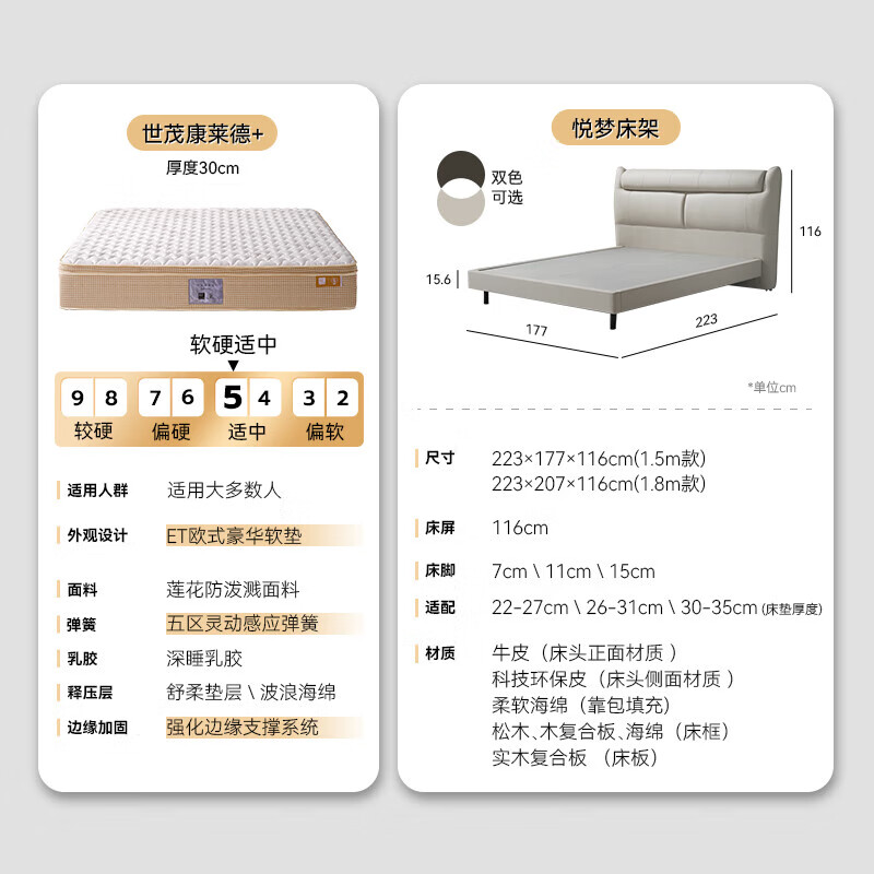金可儿(Kingkoil)皮床软床双人床悦梦之床/世茂康莱德+床垫1.5米*2米价格:9499.00元!