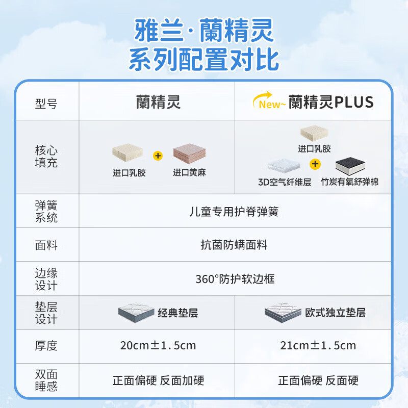 雅兰抑菌面料进口乳胶黄麻床垫 独袋弹簧er童床垫 蘭精灵 1.35*1.9米价格:3659.00元!