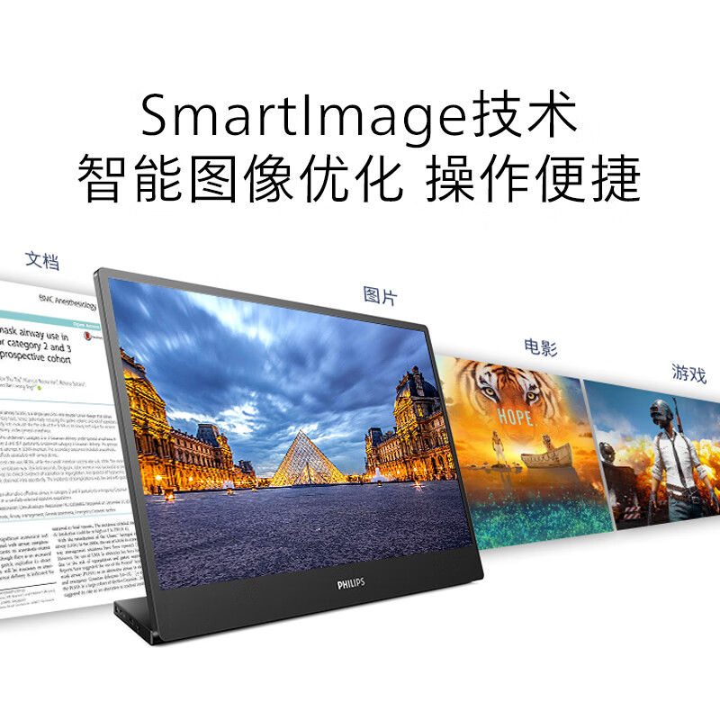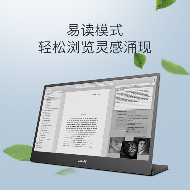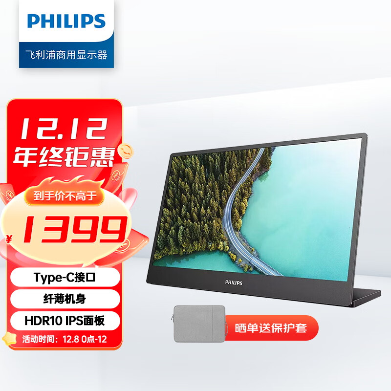 飞利浦(PHILIPS)15.6英寸 便携式显示器 HDR IPS 1080P Type-C 纤薄机身 PS4笔记本扩展副屏 16B1P3300价格:1399.00元!