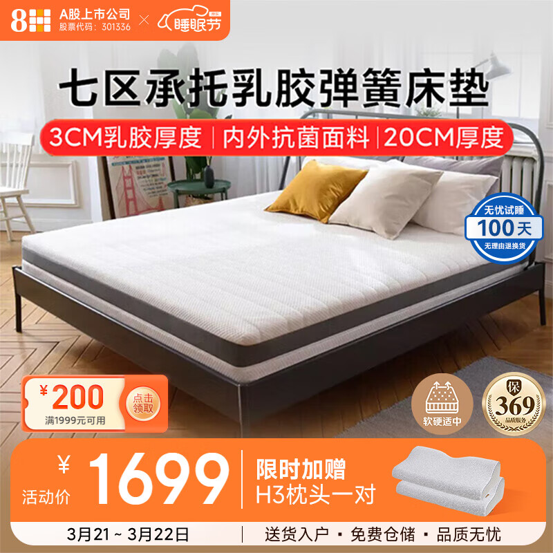 8H乳胶床垫子1.8米*2米独立袋弹簧床垫成人双人榻榻米M3Air价格:2149.00元!