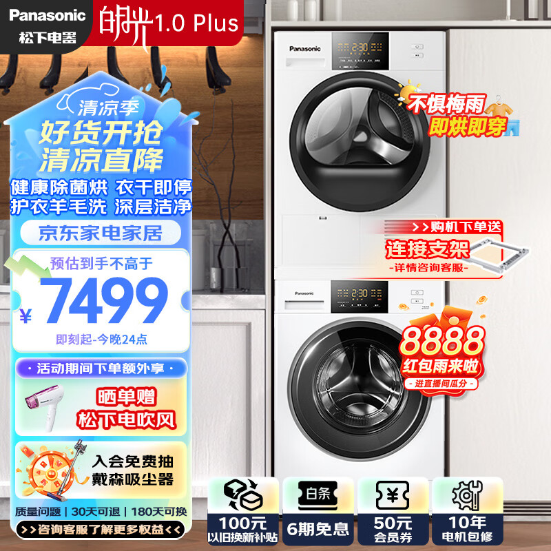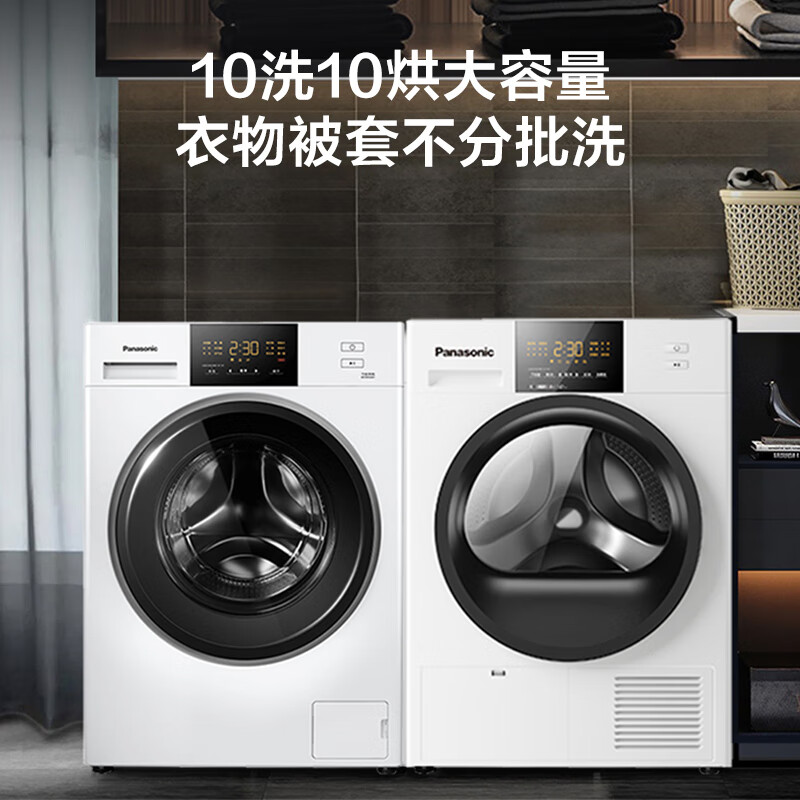 松下(Panasonic)洗烘套装 白月光1.0Plus 10kg滚筒洗衣机+10kg热泵烘干机 户外服洗 除菌烘 免熨烫 31JED+EH31JW价格:7499.00元!