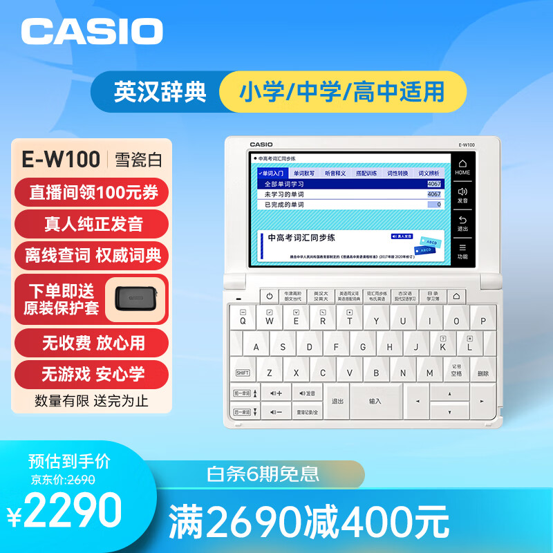 卡西欧(CASIO)卡西欧电子词典 E-W100WE 英汉辞典、中高考、雪瓷白价格:2690.00元!