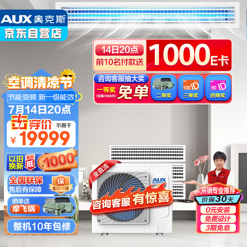 奥克斯(AUX)中央空调6匹一拖三小多联机风管机空调一级能效全直流变频嵌入式空调适用两室一厅DLR-H145W(G1)价格:19989.00元!