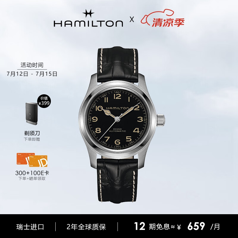 汉米尔顿(Hamilton)汉密尔顿瑞士手表男士机械表 卡其野战墨菲电影同款价格:7900.00元!