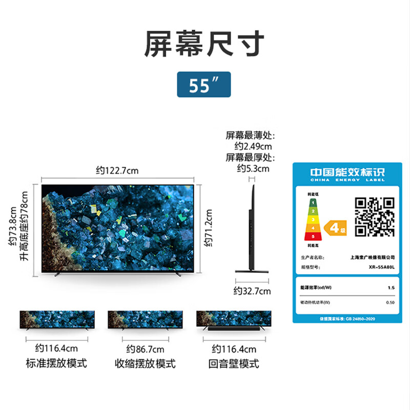 索尼XR-55A80L配置参数: