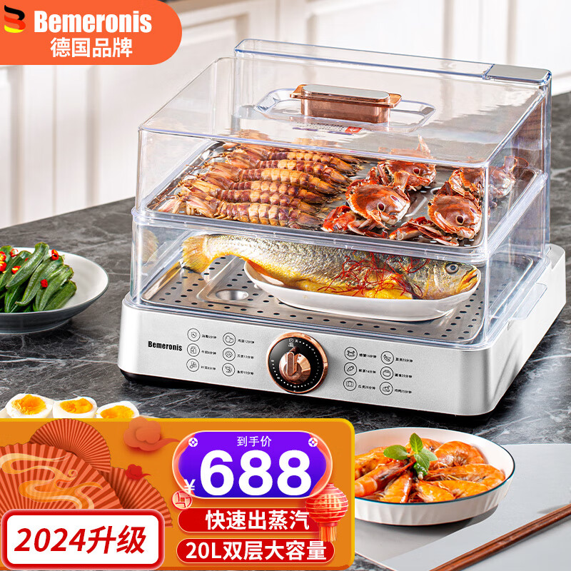贝默朗斯(Bemeronis)德用电蒸锅双层折叠多功能料理20L大容量不锈钢蒸盘电热锅隔水炖电蒸箱价格:688.00元!