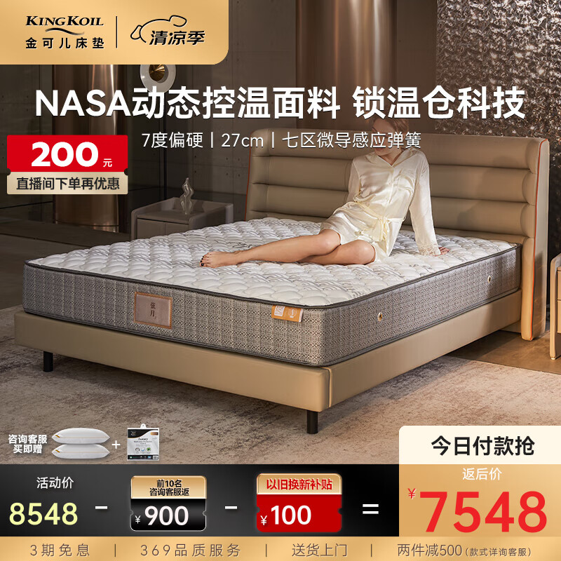 金可儿(Kingkoil)床垫分区独袋弹簧席梦思NASA动态控温面料偏硬弦月7床垫1.8x2米价格:8548.00元!