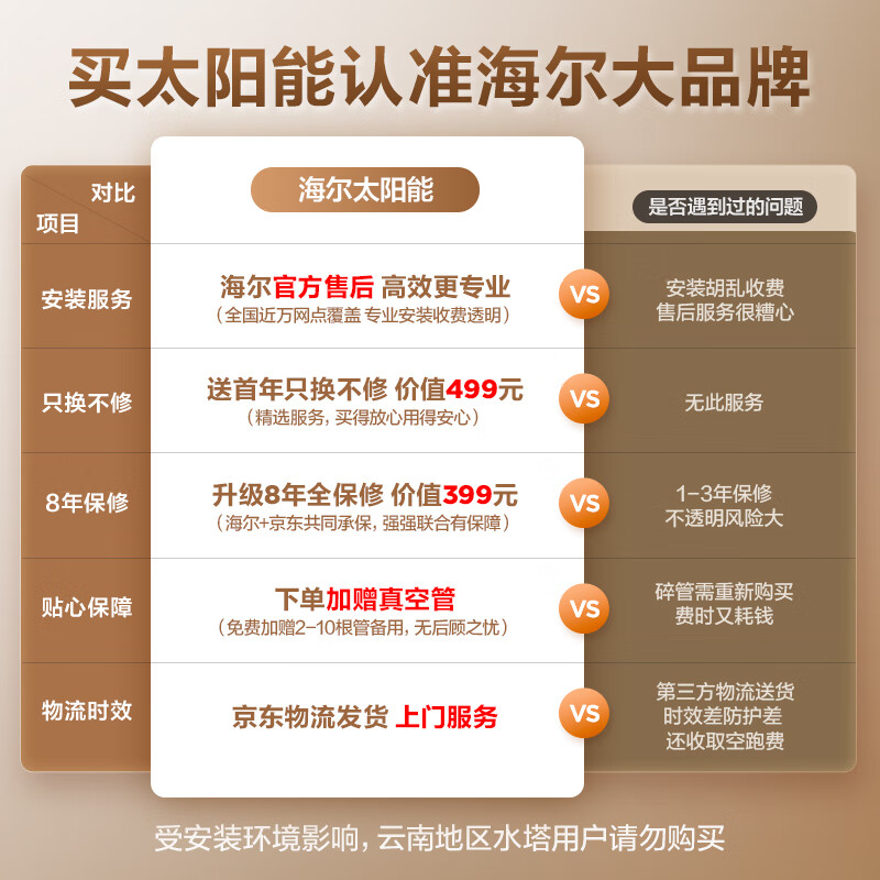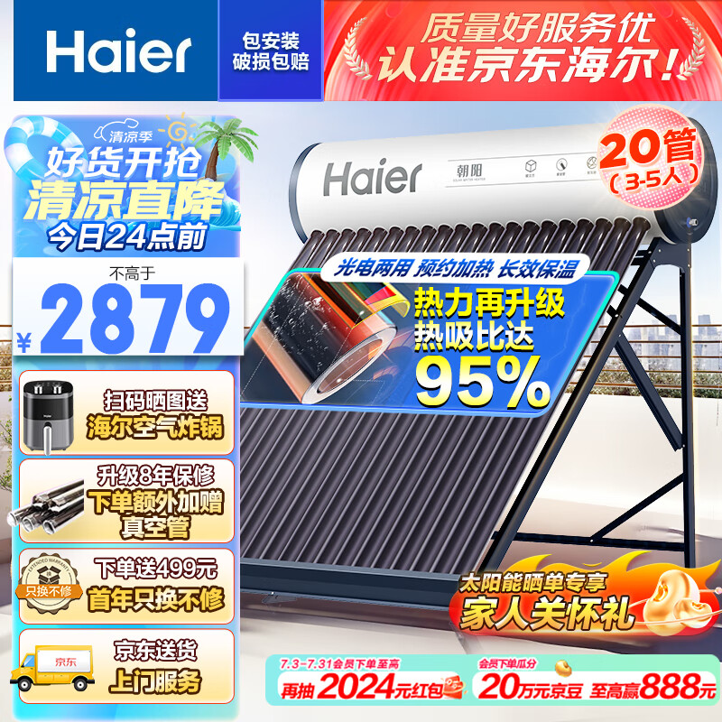 海尔(Haier)太阳能热水器家用一级能效保温聚热环WIFI自动上水光电两用预约加热 20管145升-S6价格:3179.00元!