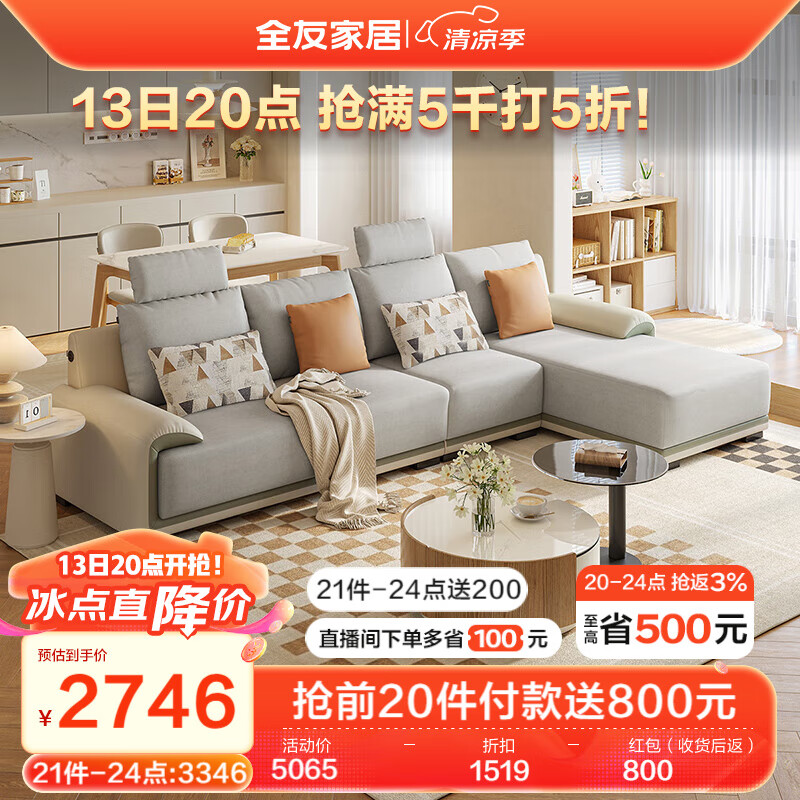 全友家居 沙发现代简约大户型客厅布艺多功能实木框架沙发家用102705价格:5065.71元!
