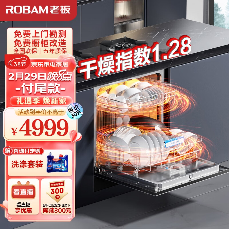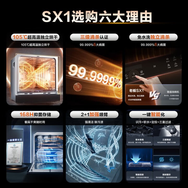 老板(Robam)sX1炙净舱10套灶下洗碗机嵌入式代替消毒一体机105度独立烘干三级消毒168h长效存储一级保管刷碗机价格:4999.00元!