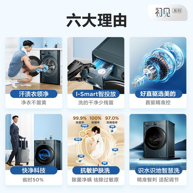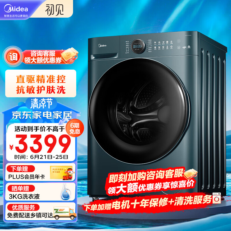 美的(Midea)滚筒洗衣机全自动 初见系列 CQ7 智能投放 直驱变频 护肤洗 高颜石砾青 10公斤 MG100CQ7IPRO价格:4299.00元!