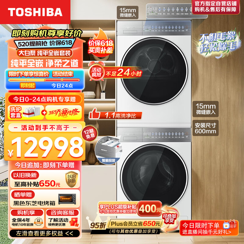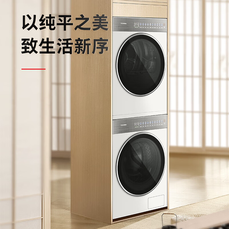 东芝(TOSHIBA)大白梨洗烘套装 10KG纯平全嵌全自动滚筒洗衣机+10KG热泵变频烘干机除毛絮 DG-10TC25B+DH-10TC25B价格:12998.00元!