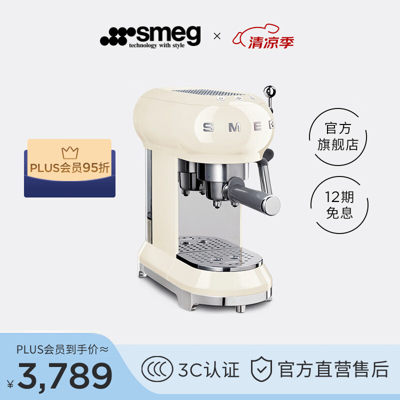 SMEG斯麦格 意大利半自动咖啡机 家用小型蒸汽奶泡 意式浓缩小型咖啡机ECF01 生日礼物 奶白色价格:2749.00元!