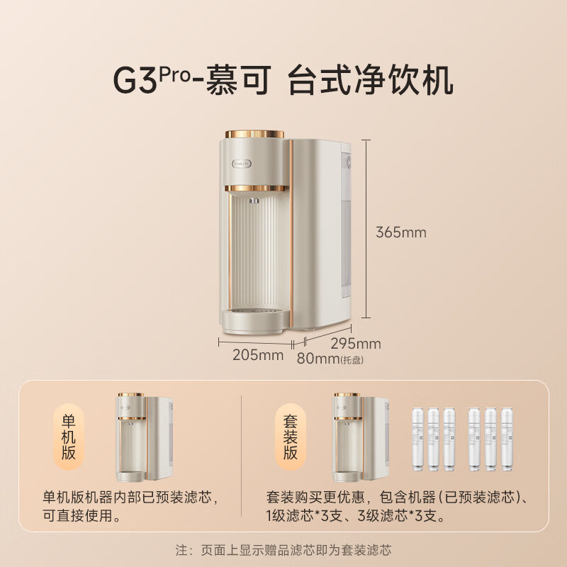 碧云泉G3家用矿物质水直饮净水器加热净化RO反渗透过滤自来水一体机免安装智能茶吧机客厅卧室杀菌小型便 G3Pro-慕可:套装版价格:3299.00元!