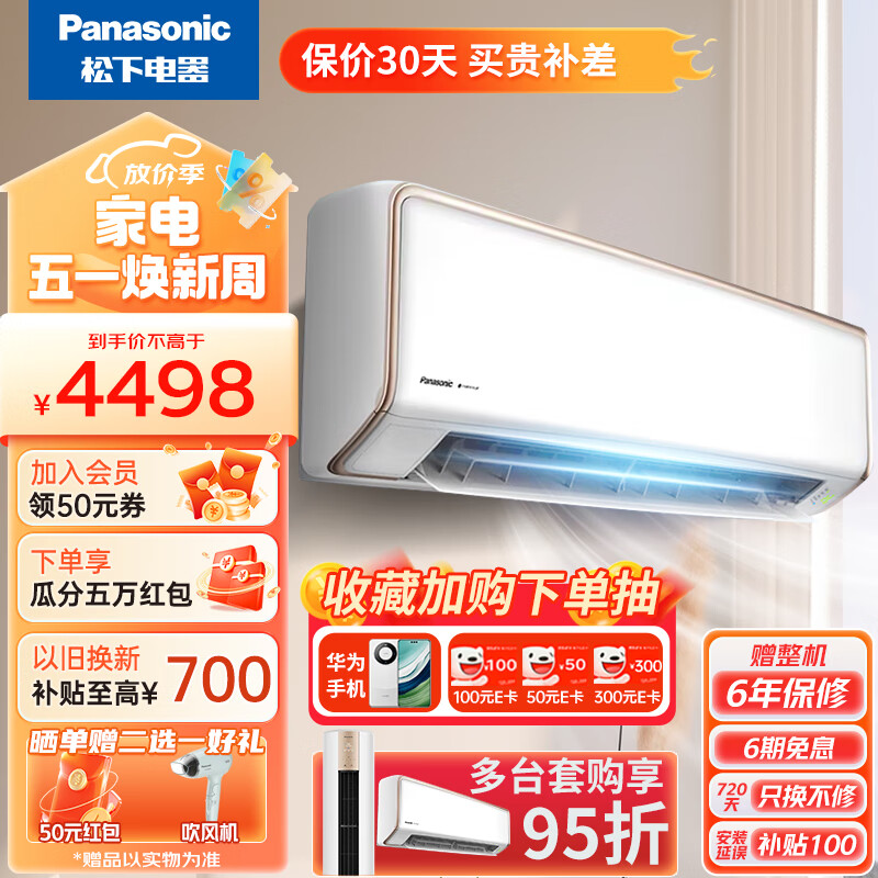 松下(Panasonic)空调新一级能效 纳诺怡除菌自清洁 变频冷暖 壁挂式挂机 洵风系列 1匹 一级能效 DG26K210价格:4498.00元!