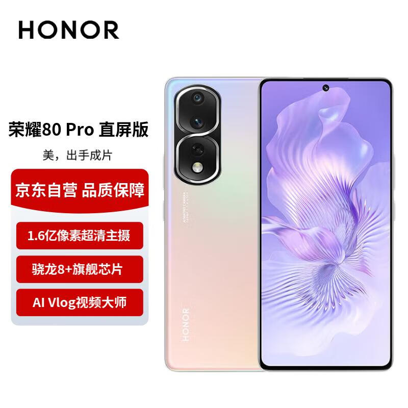 荣耀80 Pro 直屏版 1.6亿像素超清主摄 骁龙8+旗舰芯片 AI Vlog视频大师 5G手机 12GB+256GB 粉映晨辉价格:2599.00元!