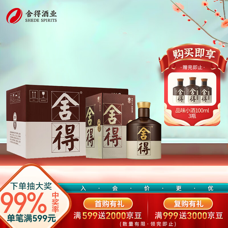 舍得 品味舍得 浓香型白酒 52度 500ml*6瓶 整箱装价格:2808.00元!